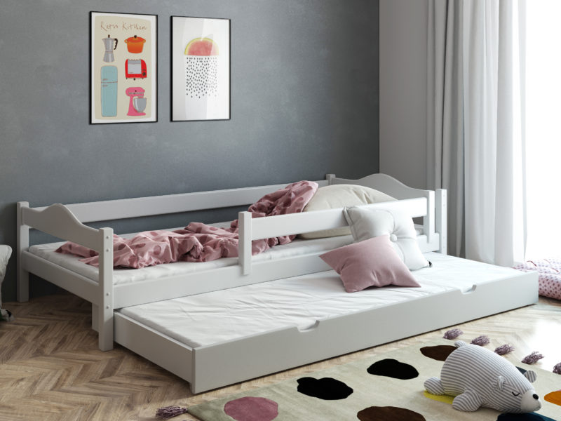 ŁÓŻKO Z LITEGO DREWNA 200/90/190/90 Z BARIERKĄ OCHRONNĄ I DRUGIM SPANIEM W SZUFLADZIE DOSTOSOWANE DO MATERACY MAX 11 CM
