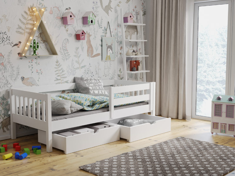 ŁÓŻKO Z BARIERKAMI SZUFLADAMI TEDI LITE DREWNO